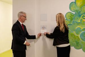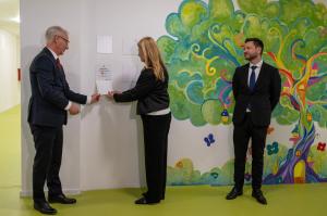 Soltész Miklós egyházi és nemzetiségi kapcsolatokért felelős államtitkár köszöntőjében felidézte azt a széleskörű összefogást, amelynek révén létrejöhetett az intézmény. Azt mondta, az egyik oldalon ott van a fájdalom, a szenvedés, a gyötrelem, a másikon pedig a szépség, a gyönyörűség, és ott van a feltámadás; arra, hogy „ez a kettő miként jön össze, nagyon nehéz választ találni, talán a Nagyhét erre világít rá". Az államtitkár elmondta, közös felelősség, hogy a legkiszolgáltatottabb helyzetben lévő gyermekek és családjaik támogatást kapjanak, az ilyen kezdeményezések mögé állni nemcsak feladat, hanem kötelesség is. Soha nem volt ekkora támogatása hasonló ügynek. Most, amikor mindenhol a világban csatazaj hallatszik, még inkább kiemelkedik egy-egy ilyen összefogás – hívta fel a figyelmet.